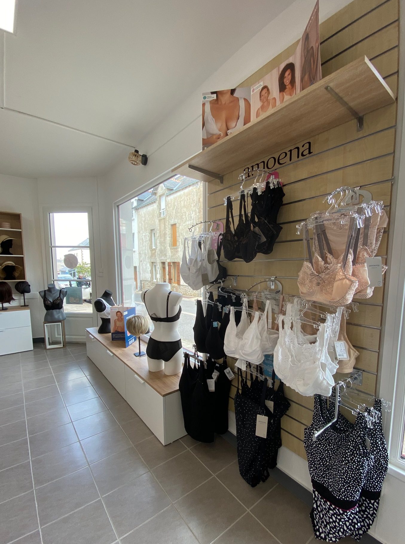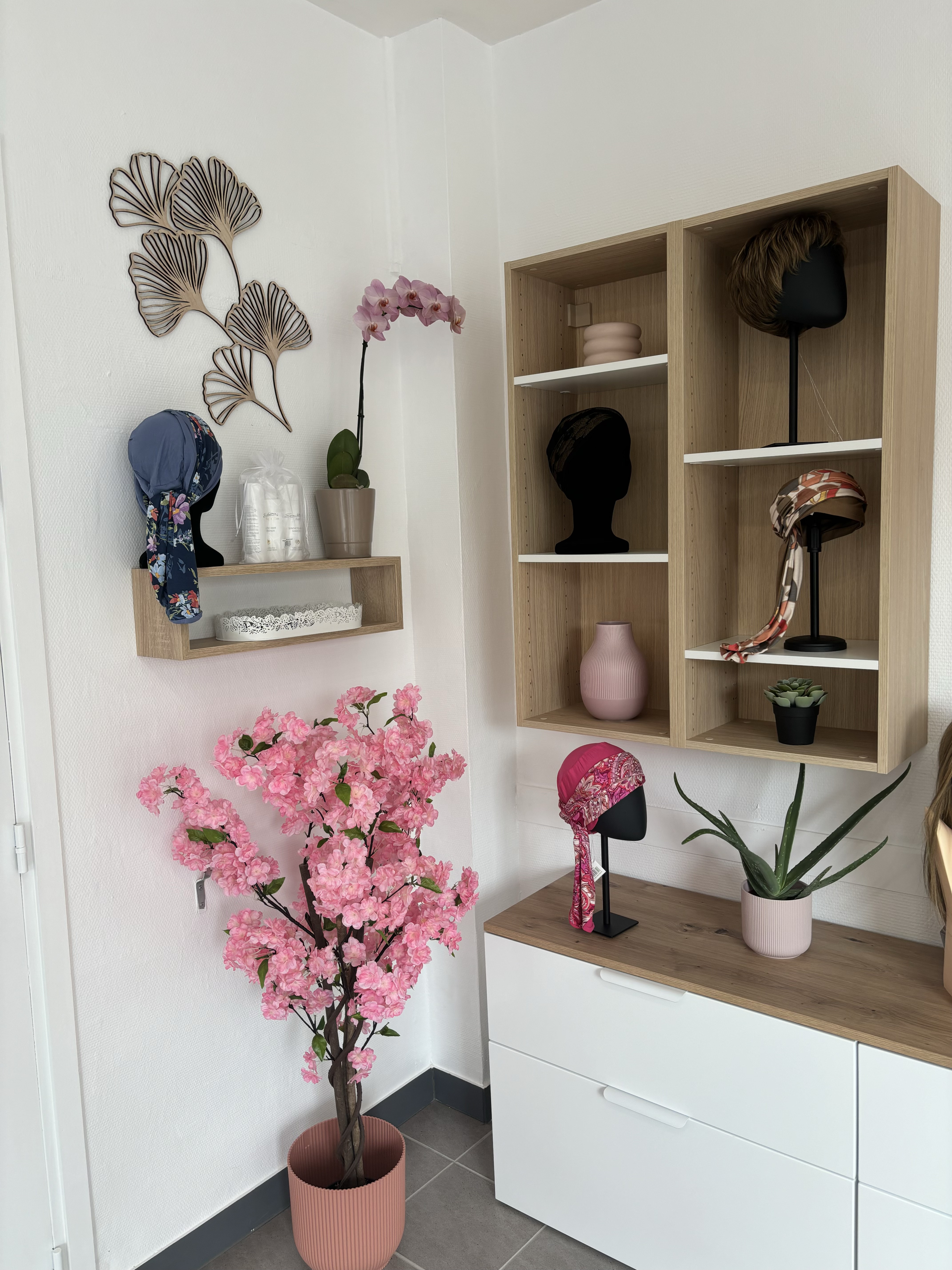 Pour garantir l’intimité de mes patientes, une salle équipée est à leur disposition comprenant : une cabine d’essayage pour la lingerie adaptée et les prothèses mammaires externes et un espace coiffage pour les prothèses capillaires, leur permettant de rester à l’abris des regards indiscrets.